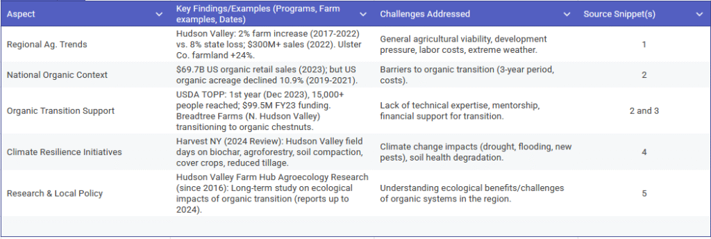 Organic and Sustainable Agriculture in the Hudson Valley – Key Developments (c. 2022-2025)